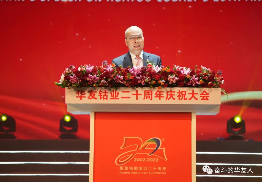 二十個金色年華,二十年崢嶸歲月,二十載春華秋實。在慶祝公司成立二十周年之際,在共同見證華友成長、共享華友喜悅、展望華友的未來美好時刻,陳董首先向蒞臨慶典的各位領導、嘉賓表示熱烈的歡迎和誠摯的感謝!向華友全體干部員工致以生日的祝福!