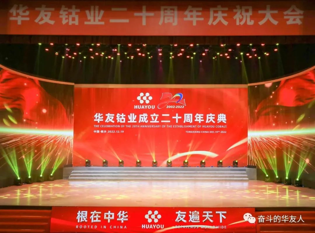 12月19日,華友鈷業(yè)二十周年慶祝大會在桐鄉(xiāng)隆重舉行。來自國內(nèi)的華友客戶代表和供應商代表,以及相關金融機構、證券機構、媒體機構等友人相約桐鄉(xiāng),歡聚一堂、共慶華誕,感受歲月綿長、感悟成長力量、感恩一路同行。
