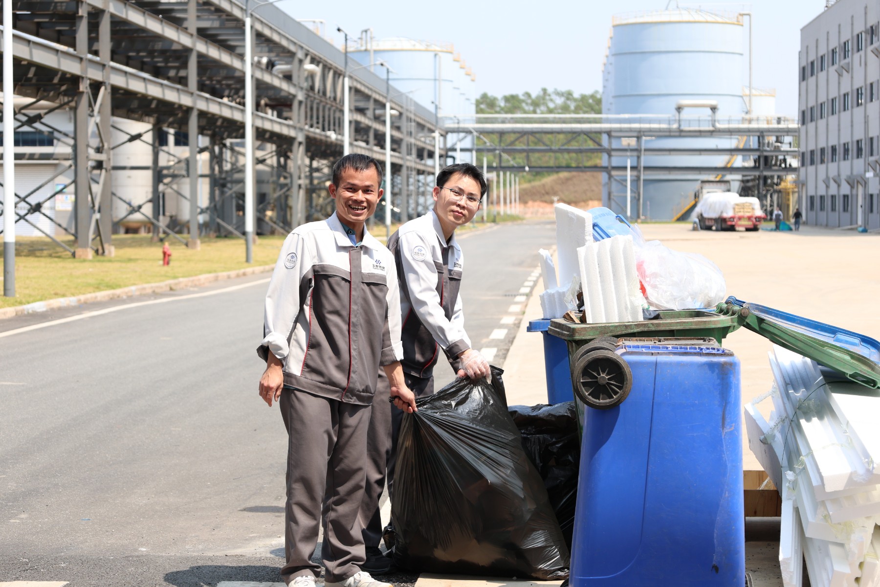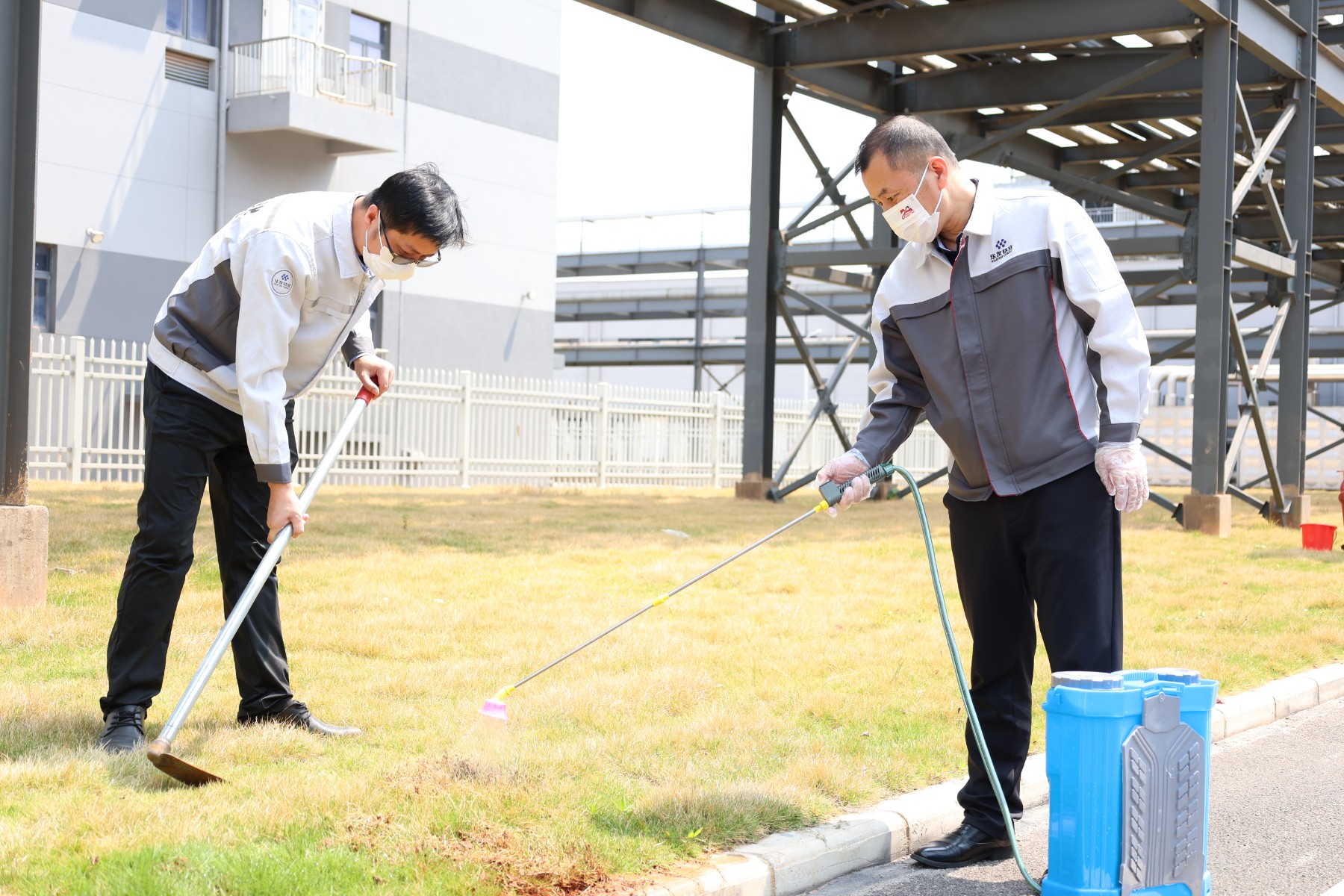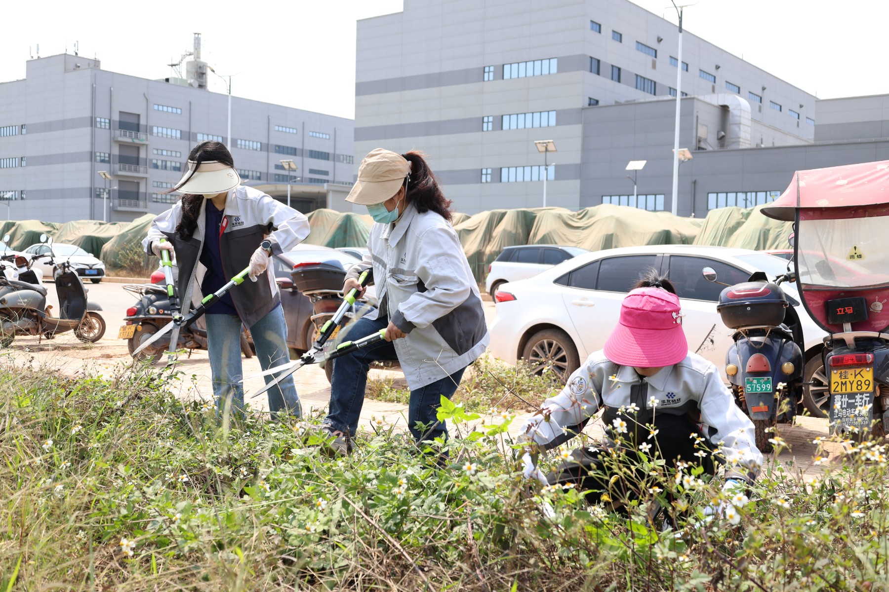 活動現場,廣西基地全體員工熱情高漲,不怕臟、不怕累,充分展現了華友人的擔當與奉獻精神。經過1個多小時的努力,廠區環境得到了顯著提升,道路干凈整潔,草坪綠意盎然,公共設施煥然一新,看著自己的勞動成果,他們臉上洋溢著滿足與自豪的笑容。