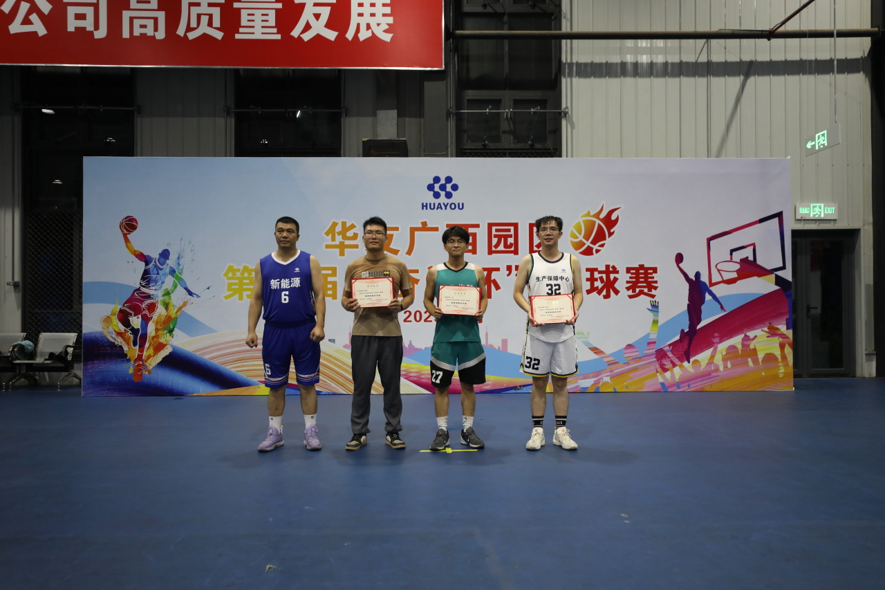 經過半個月的激烈角逐,華友廣西園區第四屆“奮進杯”籃球賽于6月26日晚落下帷幕。在扣人心弦的冠亞軍決賽中,廣西鋰業代表隊憑借最后時刻的絕殺,以74:73險勝上一屆衛冕冠軍友山廣西基地代表隊,成功捧起冠軍獎杯。新能源廣西基地代表隊在季殿軍爭奪戰中以79:78一分之差戰勝總部職能部門代表隊,斬獲季軍。