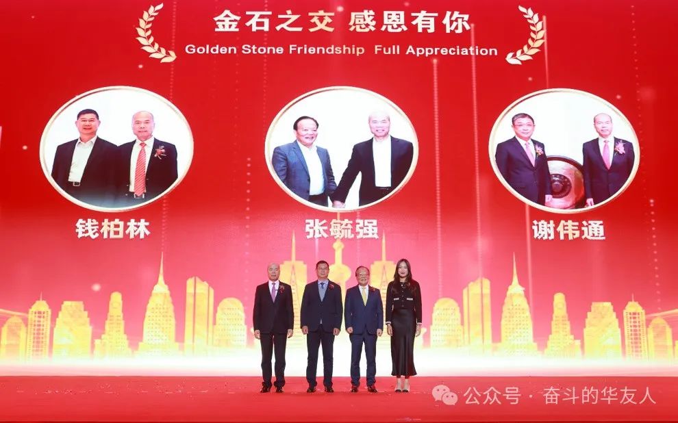 In the "Golden Friendship Gratitude Ceremony for Huayou's 30th Anniversary", Chairman Chen Xuehua presented plaques to Qian Bolin, Financial Director of Zhonghui (Zhejiang) Tax Consulting Co., Ltd., Xie Weitong, Chairman of Dasha Group, and Zhang Yuqiang, Chairman of Zhenshi Holdings Group Co., Ltd. Xie Weitong delivered a video address, jointly reviewing and witnessing this deep and lasting friendship.