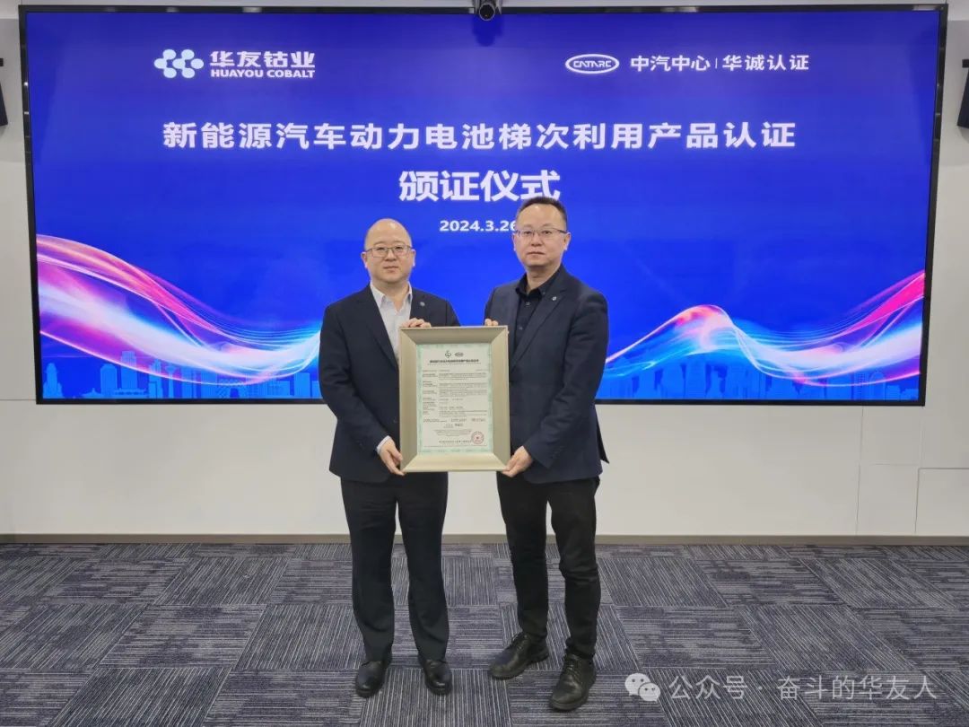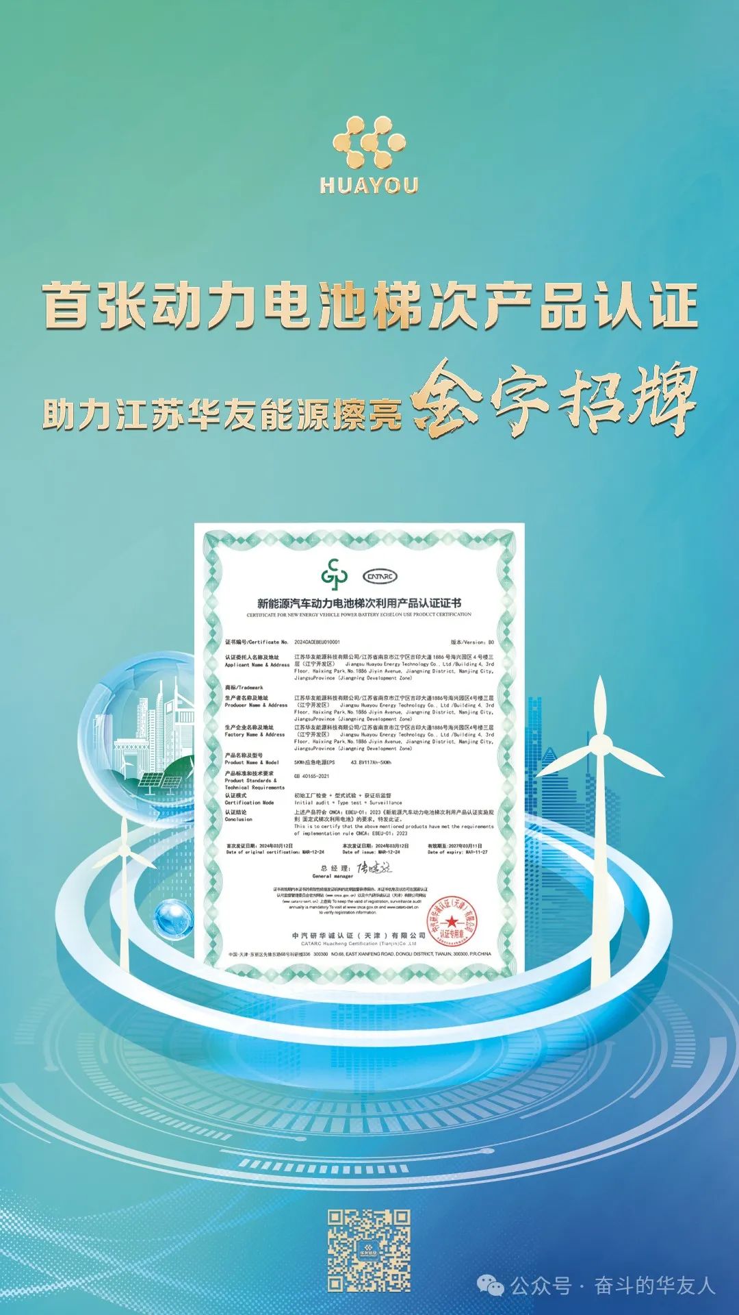 首張動力電池梯次產品認證助力江蘇華友能源擦亮“金字招牌”