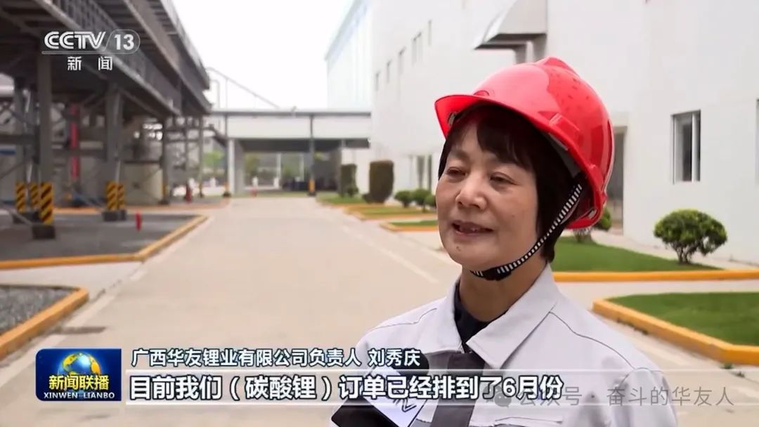 廣西華友鋰業(yè)有限公司負責(zé)人劉秀慶:“目前我們(碳酸鋰)訂單已經(jīng)排到6月份,產(chǎn)線都在滿負荷生產(chǎn)狀態(tài)。”