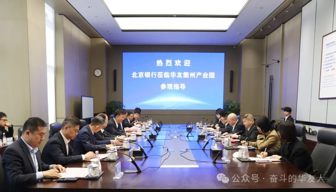 陳董對霍董一行的到訪表示熱烈歡迎,感謝北京銀行多年來的信任和支持,他詳細介紹了華友近期的生產經營情況、發展規劃及后期的發展戰略,今年是“十五五”謀劃之年,公司致力于打造科技華友、綠色華友、開放華友、責任華友,推動企業高質量發展。陳董講到,北京銀行是華友最重要的金融伙伴之一,雙方有著相似的發展使命和堅實的合作基礎。近年來,北京銀行對華友的金融支持是公司持續發展的不竭動力,希望雙方繼續保持密切合作,進一步優化業務結構,創新金融服務,拓展更多海內外合作成果,培育發展新動能,攜手打造互利共贏的銀企合作新標桿。