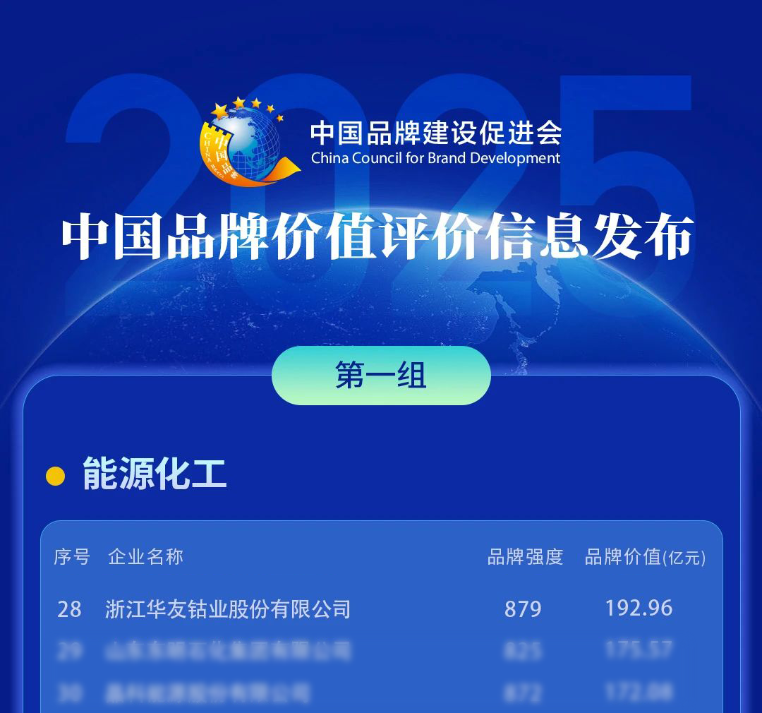 5月10日,由中國品牌建設(shè)促進(jìn)會、中國資產(chǎn)評估協(xié)會主辦,新華社品牌工作辦公室、《中國品牌》雜志社等單位承辦的“2025中國品牌價值評價信息”在浙江德清正式發(fā)布。華友鈷業(yè)品牌價值達(dá)192.96億元,較去年增長40.07億元,品牌強度879,位列能源化工榜單第28位,較去年上升六位。
